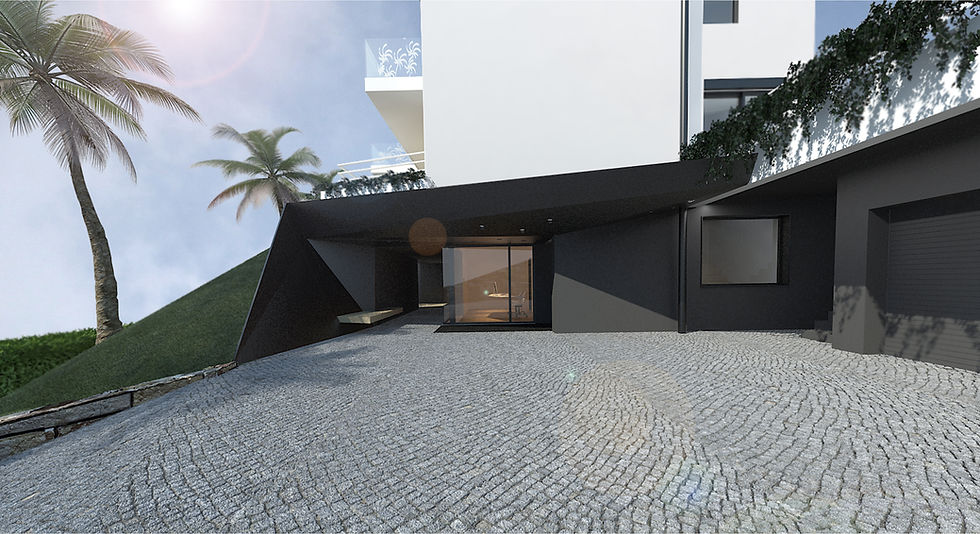 With the existing three floors the original construct was slightly oversized for the location it was placed in. To optically lower the house, the ground floor (an office and a small additional apartment/guest house) was hidden behind a layer of greenery with light entering the interior on three sides to still ensure enough daylight for the entire ground floor.